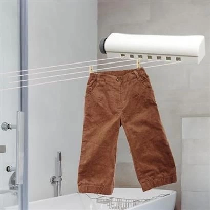 Çamaşır kurutma askısının, bir ucunu duvara sabitliyorsunuz ve çamaşır asacağınız zaman çekip diğer duvardaki aparata takıyorsunuz Anında 4 ipli 39m çamaşır asma kurutmalağınız hazır!