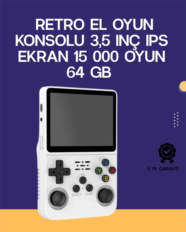 R36S Retro El Oyun Konsolu, 3.5 inç IPS tam laminasyon ekranı ve 640×480 çözünürlüğü ile retro oyunları yüksek görüntü kalitesiyle sunar. 64 GB oyun belleği ve ek 32 GB işletim sistemi belleğiyle birlikte toplam 15.000’den fazla klasik oyun barındırır. Cihaz; PS1, PSP, Dreamcast, GameBoy serisi, SNES, MAME gibi çok sayıda platformu destekler. Dört çekirdekli 64-bit ARM Cortex-A35 tabanlı RK3326 işlemcisi ve Mali-G31 MP2 GPU’su ile yüksek performans sağlar. ArkOS açık kaynak işletim sistemi sayesinde yazılım üzerinde özelleştirme yapılabilir. Ürün kutusu içinde cihaz, USB-C kablosu, ekran koruyucu ve kullanıcı kılavuzu yer alır. 3200 mAh dahili pil ile 6 ila 8 saat arası kesintisiz oyun deneyimi sunar.