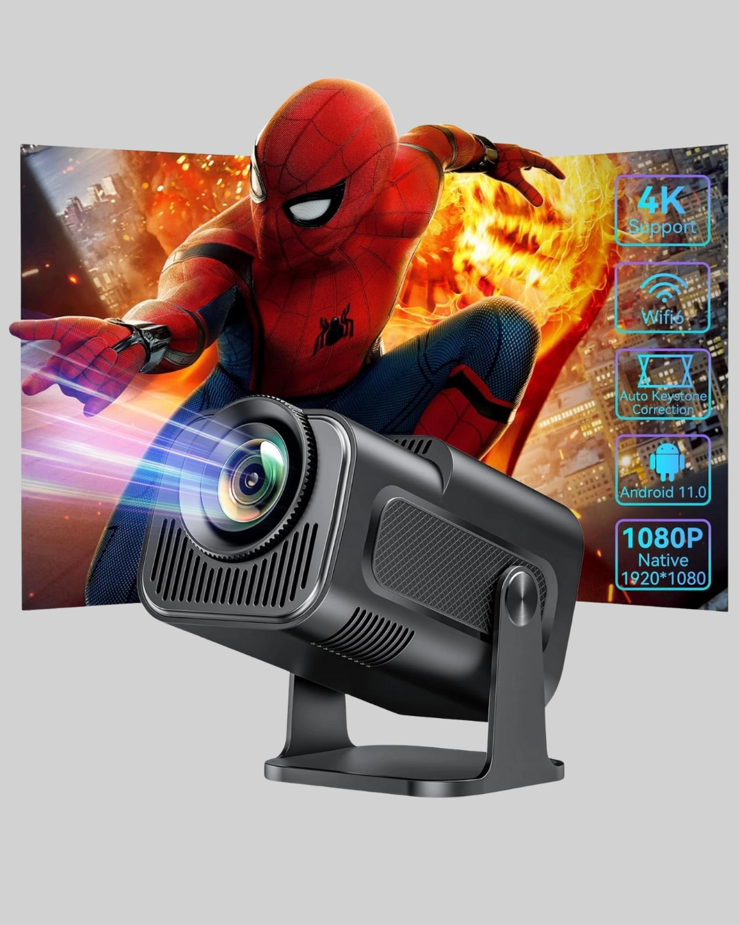Bu akıllı projeksiyon cihazı, yüksek performanslı işlemcisi sayesinde yalnızca film, dizi veya sunumlar için değil; aynı zamanda oyun performansı için de ideal bir deneyim sunar. Oyun oynarken büyük ekranda daha etkileyici bir görüntü elde etmek isteyen kullanıcılar için üretilen bu cihaz, gecikme süresini minimuma indirerek oyun keyfini kesintisiz hale getirir. İster tek başınıza ister arkadaşlarınızla birlikte büyük ekranın sunduğu geniş görüş açısında oyun oynamak, cihazın performansını çok daha keyifli hale getirir.Cihaz, geniş uyumluluk sağlayan HDMI, USB ve diğer bağlantı seçenekleri ile bilgisayar, oyun konsolu, TV kutusu, tablet ve harici depolama aygıtları gibi pek çok cihaza kolayca bağlanabilir. HDMI girişi yüksek çözünürlüklü video aktarımını kusursuz şekilde gerçekleştirirken USB bağlantısı film, müzik veya sunum dosyalarını direkt çalıştırma imkânı sunar. Çok yönlü bağlantı yapısı sayesinde kullanıcılar ek bir adaptöre ihtiyaç duymadan cihazlarını kolayca projeksiyona bağlayabilir.Projeksiyon cihazı, enerji tasarruflu lamba teknolojisi ile donatılmıştır. Bu özel ışık kaynağı, uzun kullanım ömrüne sahip olup düşük güç tüketimi ile daha ekonomik bir kullanım sunar. Hem enerji maliyetlerinizi düşürür hem de uzun süre lamba değişimi gerektirmeden projeksiyon keyfini sürmenizi sağlar.Kompakt ve son derece hafif tasarımı, projeksiyon cihazını taşınabilir hale getirir. Böylece sadece ev içinde değil, iş yerinde, seyahatte, kampta veya bahçede de rahatlıkla kullanabilirsiniz. Bu taşıma kolaylığı, cihazı yalnızca sabit bir elektronik ürün değil, aynı zamanda mobil bir eğlence ve çalışma çözümü haline getirir.Her ortamda net görüntü kalitesi sunmak üzere tasarlanan bu akıllı projeksiyon cihazı, hem ev sineması oluşturmak isteyen kullanıcılar hem de oyun, sunum veya dış mekânda film izlemek isteyenler için mükemmel bir seçimdir.