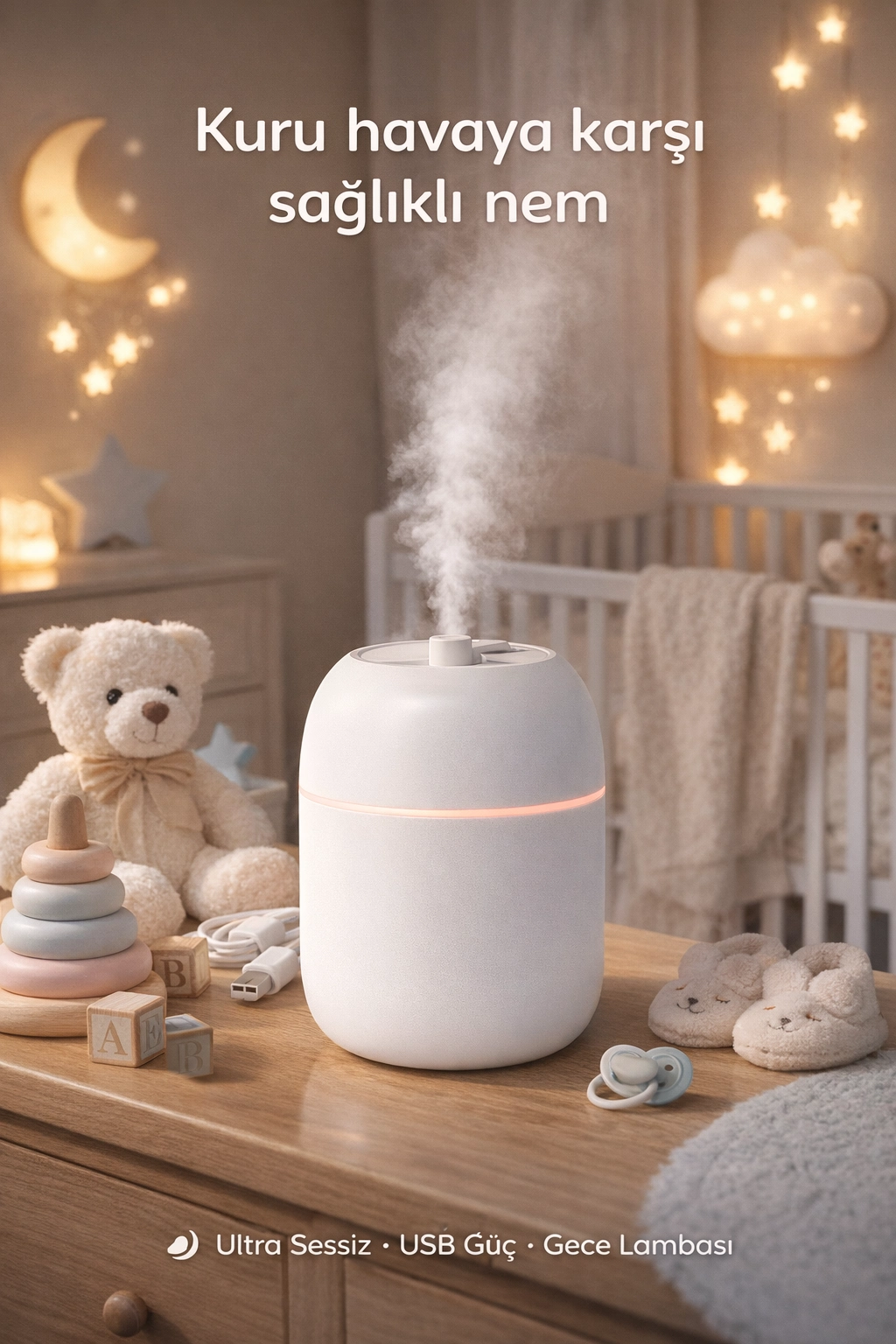 Bebek ve Çocuk Odası İçin Sessiz Ultrasonik Hava Nemlendirici Gece Lambalı Buhar Makinesi