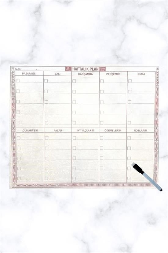 Ürün Gezegeni® Şeffaf Kendiliğinden Yapışkanlı Kalemli Haftalık Planlayıcı 40cm-50cm