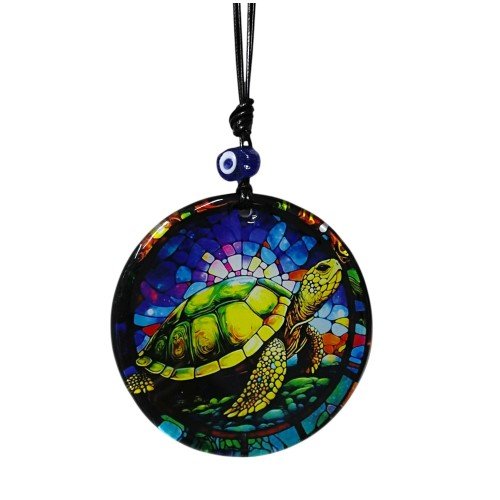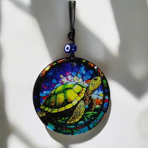 Kaplumbağa Desenli Mavi Renk 12 Cm Duvar SüsüKaplumbağa, uzun ömür, sabır ve bereketi simgeleyen anlamlı figürüyle tasarlanan bu mavi renk duvar süsü, tamamen el işçiliği ile üretilmiş özel bir dekoratif üründür. Mavi rengin huzur veren etkisi, kaplumbağa motifinin güçlü sembolizmiyle birleşerek hem estetik hem de anlamlı bir tasarım sunar.Tasarım harikası olan bu el yapımı kaplumbağa motifli duvar süsü, cam yüzeyinin parlak yapısı sayesinde ışığı zarif bir şekilde yansıtır ve bulunduğu ortama ferah bir görünüm kazandırır. El emeği ile hazırlanmış olması, her ürünü kendine özgü ve özel kılar.Kaplumbağa desenli duvar süsümüz 12 santimetre çapındadır. İp dahil toplam uzunluğu 25 santimetredir. Hafif yapısı sayesinde duvara, kapıya, pencere önüne veya farklı dekoratif alanlara kolaylıkla asılabilir.