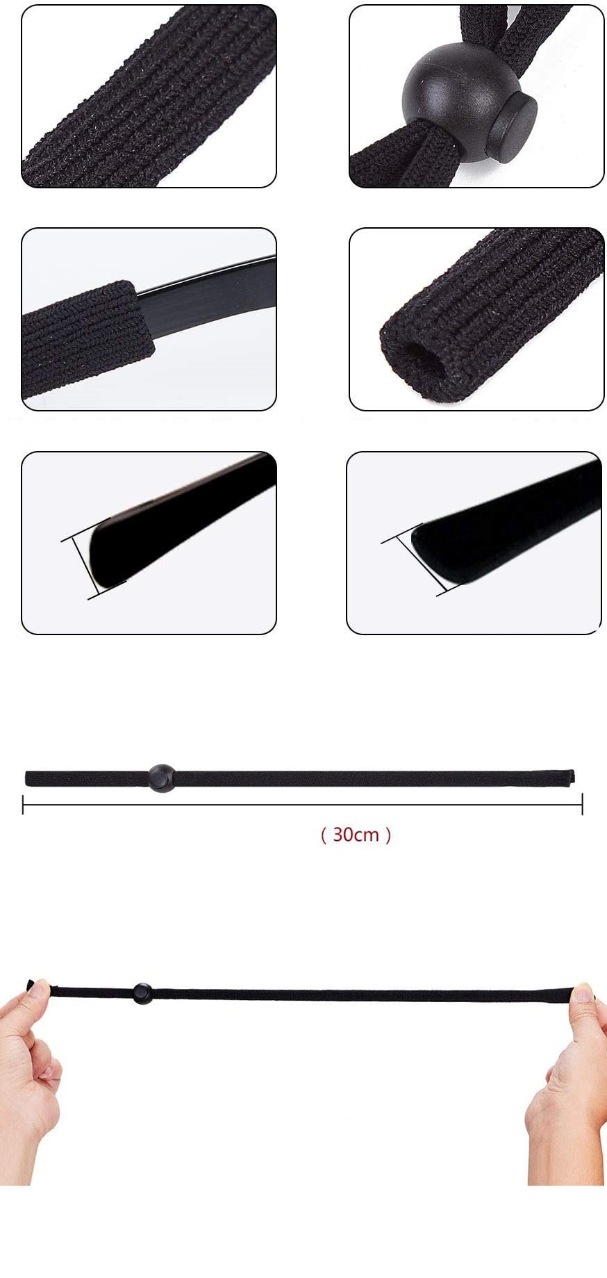 GÖZLÜĞÜ YERİNDE TUTUN :Boyun askısı 37 cm uzunluğundadır ve istediğiniz kadar sıkı veya gevşek bir şekilde ayarlanabilen siyah kaymaz düğmeyle gönderilir. Uçlardaki tüpler, sıkıldığında gözlükleri başa sabitlemek için şakakları sıkıca kavrar. Boyun bağı tarzı gözlük tutucuyu kullanmadığınız zamanlarda boynunuza asın ve güneş gözlüklerinizi bir daha asla kaybetmezsiniz.