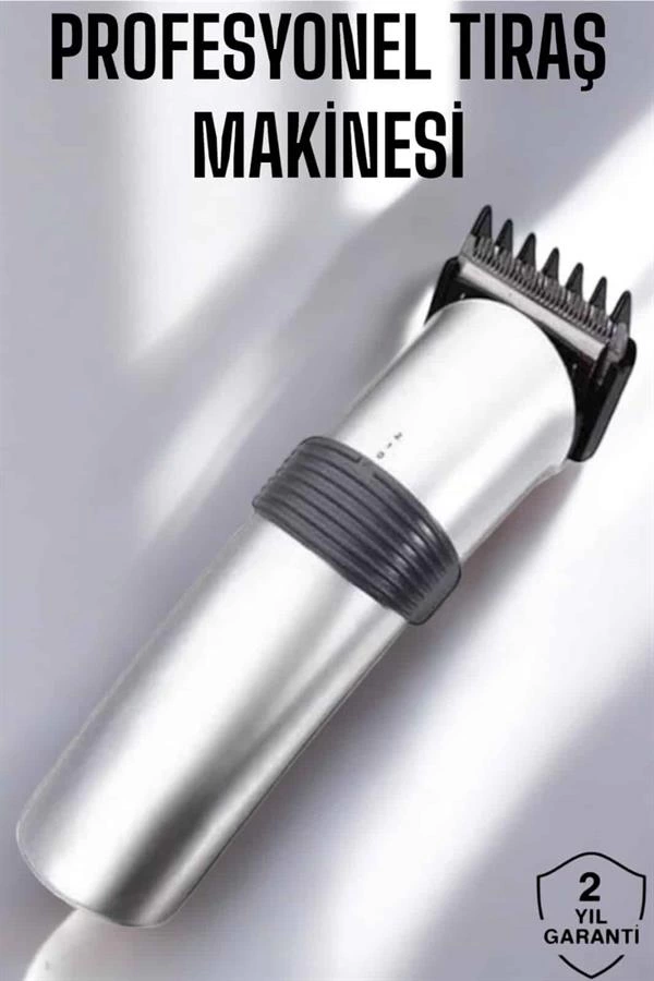 Evinizde veya kuaförde profesyonel tıraş deneyimi yaşamak isteyenler için mükemmel bir çözüm sunan bu şarjlı saç ve sakal kesme tıraş makinesi, güçlü motoru, yüksek kaliteli paslanmaz çelik bıçakları ve ergonomik tasarımıyla kullanım kolaylığı sağlar. Saç ve sakal şekillendirme konusunda size maksimum kontrol sunarak mükemmel sonuçlar elde etmenize yardımcı olur. Bu cihaz, zamandan tasarruf etmek ve kesintisiz sonuçlar almak isteyen herkes için ideal bir tercihtir.Profesyonel Sonuçlar, Ev Konforunda:Bu şarjlı tıraş makinesi, evde kullanabileceğiniz profesyonel düzeyde bir makine olup, saç, sakal ve bıyık kesimi gibi tüm kişisel bakım ihtiyaçlarınızı karşılar. Sıfır kesim başlığı ile kısa ve keskin bir tıraş, ayarlanabilir taraklı başlık ile ise sakallarınızı şekillendirerek uzunluğu ayarlayabilirsiniz. Makinenin gelişmiş motoru sayesinde, yoğun sakallarınızda bile zahmetsiz ve hızlı bir kesim deneyimi yaşarsınız. Bu cihaz, size profesyonel kuaför salonu kalitesinde tıraş sonuçları sunar.Kusursuz Konfor ve Kullanım Kolaylığı:Gelişmiş tasarımı sayesinde makine, elinize rahatça oturur ve uzun süre kullanımda dahi konfor sunar. Kaymayı engelleyen dış yüzeyi, cihazı elinizde güvenle tutmanızı sağlar. Ayrıca, oldukça sessiz çalışan motoru sayesinde tıraş esnasında rahatsızlık vermez. Kolayca açılıp kapanabilen güç düğmesi, başlık değiştirme sistemi ve pratik kullanımı sayesinde, tıraş işlemini zahmetsizce tamamlayabilirsiniz. Cihazın kablosuz tasarımı, sizi hareket özgürlüğü konusunda hiçbir şekilde kısıtlamaz.Uzun Ömürlü ve Verimli:Bu profesyonel tıraş makinesi, dayanıklı paslanmaz çelik bıçaklar sayesinde uzun ömürlüdür ve her kullanımda keskinliğini korur. Şarj edilebilir özelliği ile kablosuz kullanım sağlar ve 1 saatlik şarj ile 60 dakika boyunca kesintisiz kullanım imkanı sunar. Yüksek kapasiteli bataryası, uzun süreli kullanımda bile mükemmel performans sağlar. Ayrıca, otomatik güvenlik modları sayesinde güvenli bir kullanım deneyimi sağlar. Tüm bunlar, cihazın ömrünü uzatır ve bakımınızı uzun süre kaliteli bir şekilde yapmanıza yardımcı olur.Paket İçeriği: 1 Adet Şarjlı Tıraş Makinesi 5 Adet Ayarlanabilir Kesim Tarağı 1 Adet Yağ Şişesi 1 Adet Temizleme Fırçası 1 Adet Şarj Adaptörü