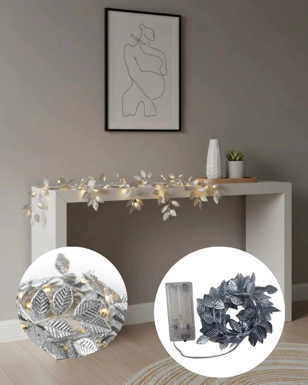 Dekoratif Gümüş Yaprak LED Aydınlatma Pilli Şık Ortam Işığı