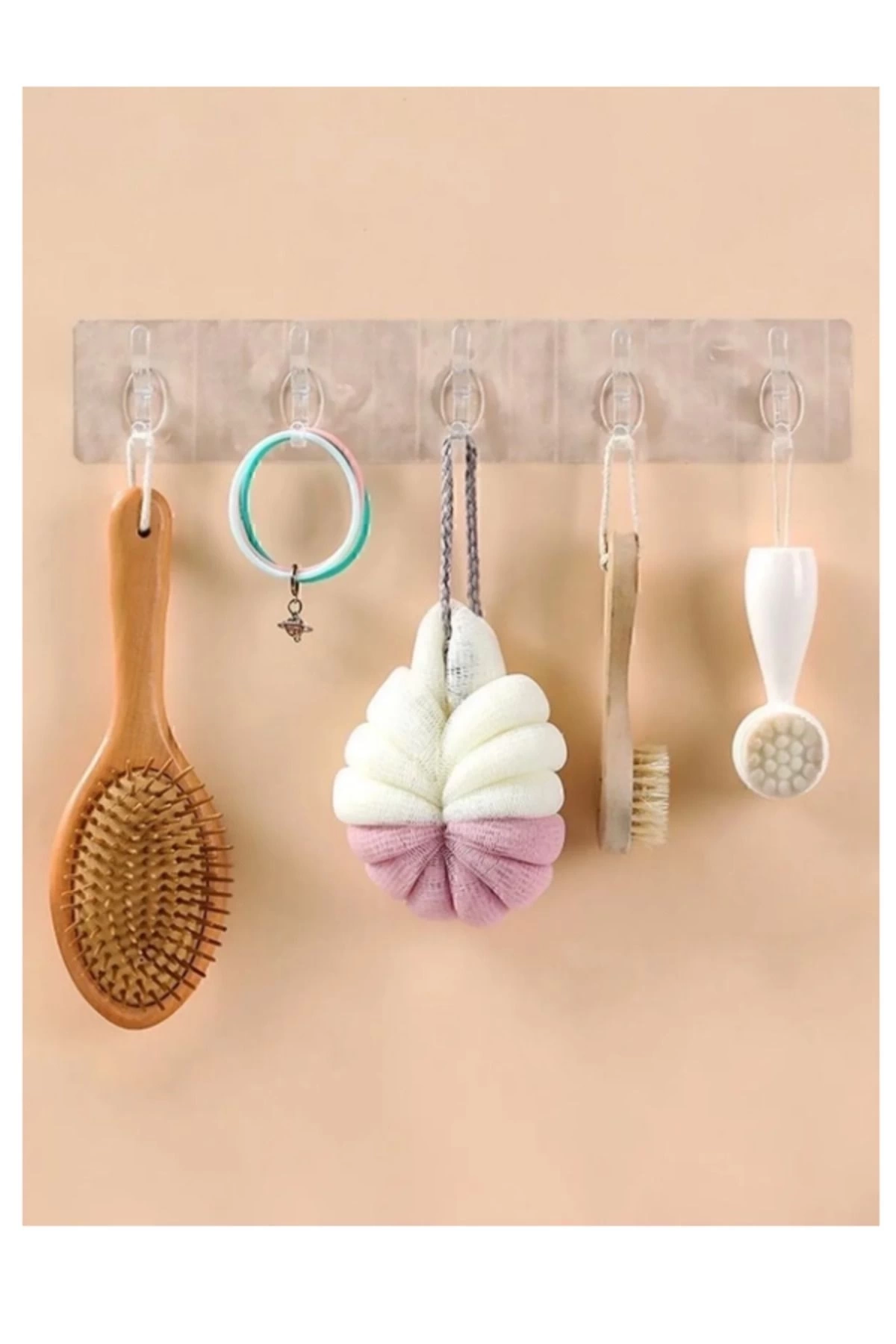 2 Adet Kendinden Yapışkanlı Güçlü Şeffaf 5li Askılık – Kapı Arkası Mutfak Duvar Banyo