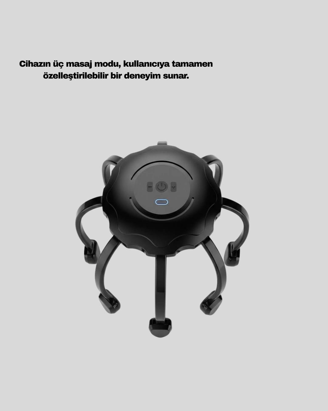 Elektrikli kafa masaj aleti, 360 derece kapsama sağlayan çok noktalı yapısıyla saç derisine eşit ve dengeli bir masaj uygulamak üzere tasarlanmıştır. 8 kollu titreşimli masaj sistemi, baş çevresini sararak profesyonel masaj hissini ev ortamına taşımayı hedefler. Bu sayede kısa sürede rahatlama hissi elde edilmesine yardımcı olur.Üç farklı masaj modu, farklı ihtiyaçlara uygun seçenekler sunar. Hafif titreşim modu sakinleşme odaklı bir kullanım sağlarken, orta seviye günlük stresin azaltılmasına katkı sağlar. Yoğun mod ise daha belirgin titreşimlerle masaj hissini artırır. Tek tuşla kontrol edilebilen yapısı sayesinde kullanım oldukça pratiktir.USB şarjlı tasarımı, kabloya bağlı kalmadan özgür bir kullanım sunar. Sessiz motor teknolojisi sayesinde gürültü oluşturmadan çalışır ve gece kullanımına uygundur. Kompakt ve hafif yapısı, cihazın çanta içerisinde kolayca taşınmasını sağlar.Uzun süre masa başında çalışanlar, zihinsel yorgunluk yaşayanlar veya gün sonunda gevşemek isteyenler için ideal bir yardımcıdır. Saç derisine uygulanan titreşimli masaj, ferahlık hissini artırarak rahatlamaya destek olur.Elektrikli kafa masaj aleti, hem günlük bakım rutininizi tamamlamak hem de kendinize kısa molalar vermek için pratik bir çözümdür. Konforlu, taşınabilir ve kullanıcı dostu tasarımı ile evde masaj keyfini zahmetsiz hale getirir.