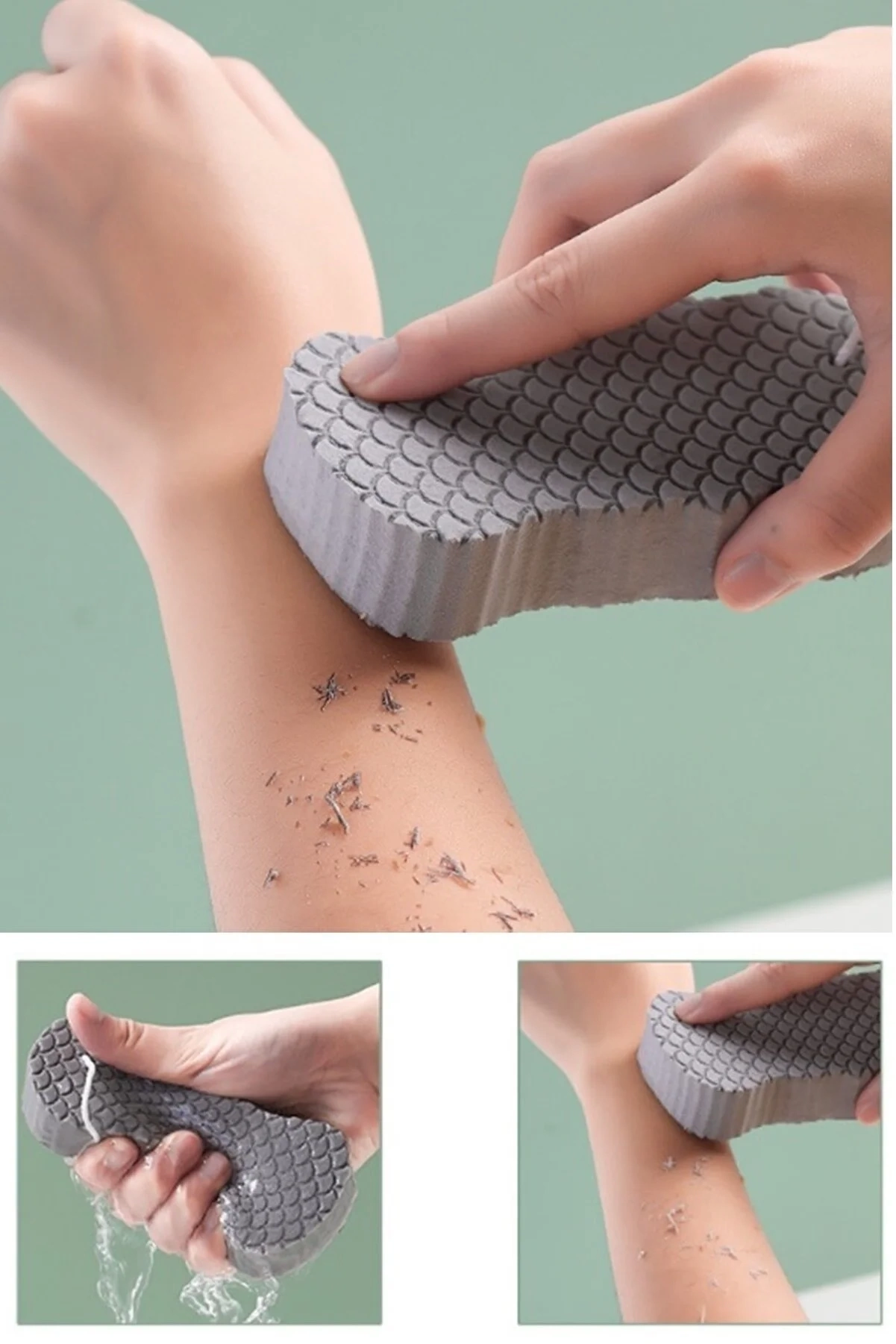 Sünger ve cilt arasındaki sürtünmeyi artıran ve çamur sürtünme etkisini daha iyi yapan bu banyo süngeri hassas taneler vardır. Bir kordon ile, kullanımdan sonra saklamak ve kurutmak kolaydır.