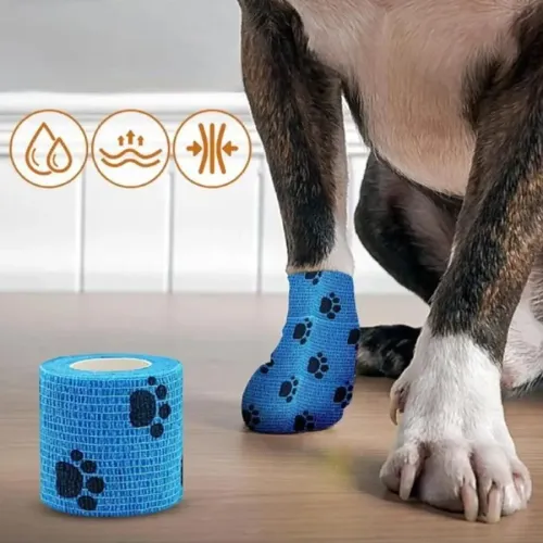 Evcil hayvanınızın hassas veya yaralanan bölgeleri için hem etkili koruma hem de tam konfor! Bu Pati Desenli Bandaj, evcil hayvanlar için özel olarak tasarlanmış kendinden yapışkanlı yapısıyla tüylere yapışmaz, sadece kendisine yapışarak çıkarırken tüy çekme derdine son verir.Su geçirmez tasarımı sayesinde yaralı bölgeyi suya karşı korur, hava alabilir yapısı ise ciltte tahrişi önler. Evcil hayvanınızın hareketini kısıtlamadan güvenli bir şekilde yerinde kalır. Üzerindeki sevimli pati desenleri ise estetik bir görünüm sunar. Yaralanmaların korunması ve iyileşme sürecinin desteklenmesi için idealdir.